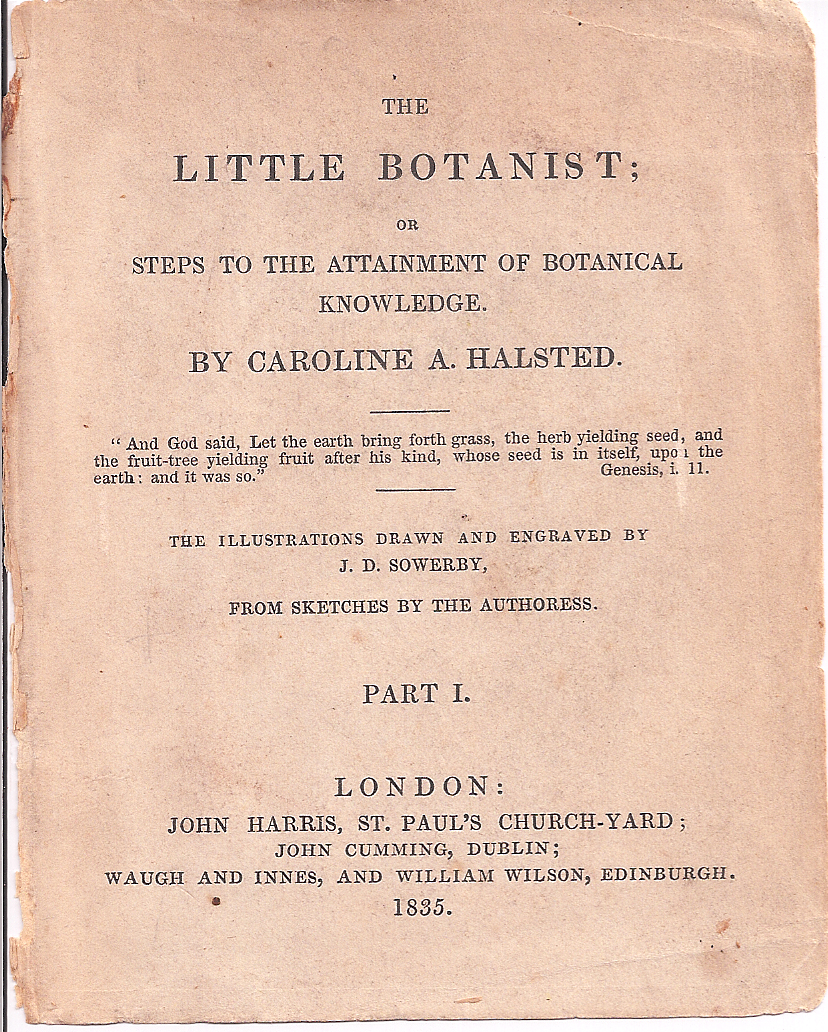 This book is titled, The Little Botanist or Steps to the Attainment of Botanical Knowledge. The title alone makes us giddy. The fourteen illustrations included in this book were drawn and engraved by J.D. Sowerby and were based on sketches created by the author, Caroline A. Halsted.