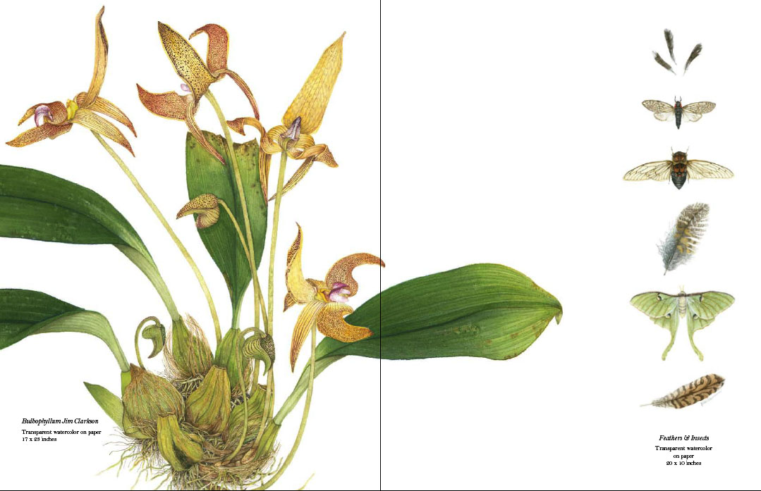 When she was a little girl, Pam Kessler‘s father taught her how to look at plants. These innocent observations sparked an appreciation for nature in the young naturalist and marked the beginning of a career as an accomplished botanical artist. Pam’s paintings are in private and public collections such as the Hunt Institute for Botanical Documentation and the Shirley Sherwood Collection. Fortunately for us, a collection of Pam’s plant portraits and natural history paintings is now available in a format we can all enjoy. Pam’s detailed watercolor paintings of orchids, primroses, beets, onions, gourds, insects, feathers, and nests are featured in her new book, Response to Nature: Botanical Watercolors 1972-2010. Most of the plant portraits in this book are of orchids. Pam’s orchid paintings contain excruciating detail from the markings on the flowers, to the patterns on the leaves, to the painted plant labels written in pencil. Even plant stakes and twist ties have not gone unnoticed.