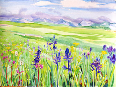 Exploring and botanizing in the spring, summer, and fall are my favorite activities. I look for close up scenes that almost jump out at me with their uniqueness and beauty, and try to share my visual experience of these scenes with the viewer. I want to show people the exquisite beauty that is underfoot in western Canada. I also take pains to ensure that the painting is botanically correct; that is, I only show plants growing together that would normally do so in a given habitat. I enjoy painting flowering plants, but also enjoy depicting their more humble relatives that may be easily overlooked, such as fungi, lichens, mosses, and even algae. My favorite habitats are calcareous springs and fens, foothills, grasslands, sub-alpine and alpine areas, wetlands, and tide pools.