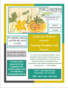 Capture the colors, shapes and textures of pumpkins and gourds. Instructor: Catherine Watters. Cost: $130 members/$150 non-members. For complete details and to register, click here.