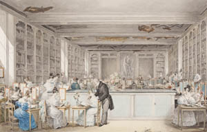Julie Ribault (1799-c.1839) Redoute's school of botanical drawing in the Salle Buffon of the Jardin des Plantes, Paris, watercolour over graphite © The Fitzwilliam Museum