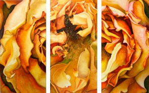 In keeping with this tradition, the seventeen artists of Studio 155 created drawings and paintings that bring attention to symbolic themes represented by flowers, trees, fruit, vegetables, herbs and vines. For example, museum visitors will see the whimsical watercolor painting by Wendy Cortesi of a pumpkin that recalls Dia de los Muertos, the Hispanic tradition “Day of the Dead”. They will also see Neena Birch’s rose painting symbolizing ancient spiritual contemplation and centering, as well as Michael Rawson’s painting of a white oak representing strength and endurance.