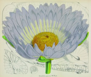 Nymphaea gigantea W.Hook, 1855; Unknown artist after Walter Fitch; Charles Lemaire, editor; botanical print from Le Jardin Floriste, vol. 3; handcoloured engraving on paper with gum arabic; Collection: Art Gallery of Ballarat; Purchased with funds from public donation, 2011