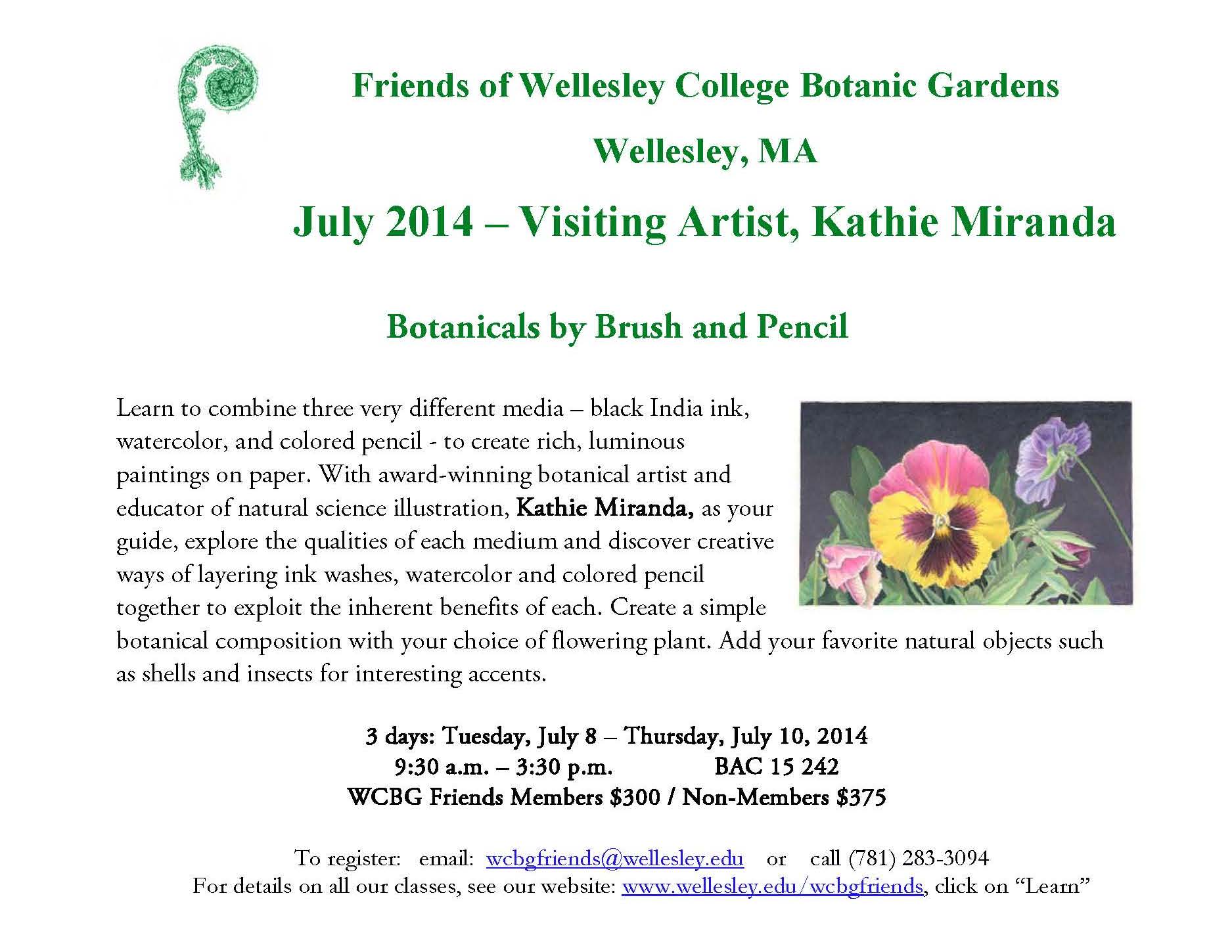 Create botanical paintings on paper using black India ink, watercolor and colored pencil. Learn how to combine these different media in a special summer workshop with award-winning botanical artist Kathie Miranda. Discover how to layer ink washes, watercolor and colored pencil as you compose a painting of plants and other natural history objects. This three-day workshop begins July 8, 2014 and will be held at Wellesley College Botanic Gardens.