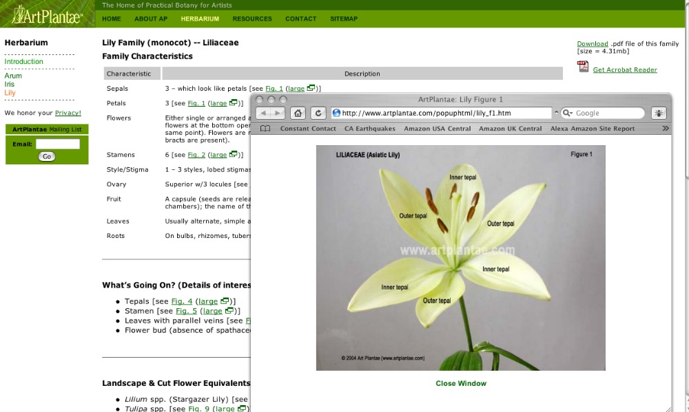 - The ArtPlantae blog is one of the resources included in the section “More to Explore” by artist and nature journal instructor Pam Johnson Brickell in Life is Full of Sweet Spots: An Exploration of Joy by Mary O’Connor (Abbott Press, 2013).