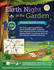 This year ArtPlantae will lead EE Week-related activities at venues in Riverside and Orange counties. On Earth Day itself, you’ll find ArtPlantae at Earth Night in the Garden, a popular family event held in the Mission Grove area of Riverside. Upcoming events include:
